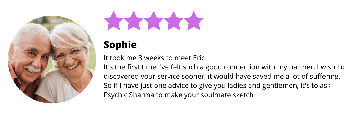 "I wasn’t sure what to expect, but when I saw my soulmate sketch, my heart skipped a beat. It looked exactly like a guy I had just started talking to! A few months later, we became a couple, and I can’t help but feel this sketch was a sign from the universe. Thank you, Psychic Sharma!" Ana V